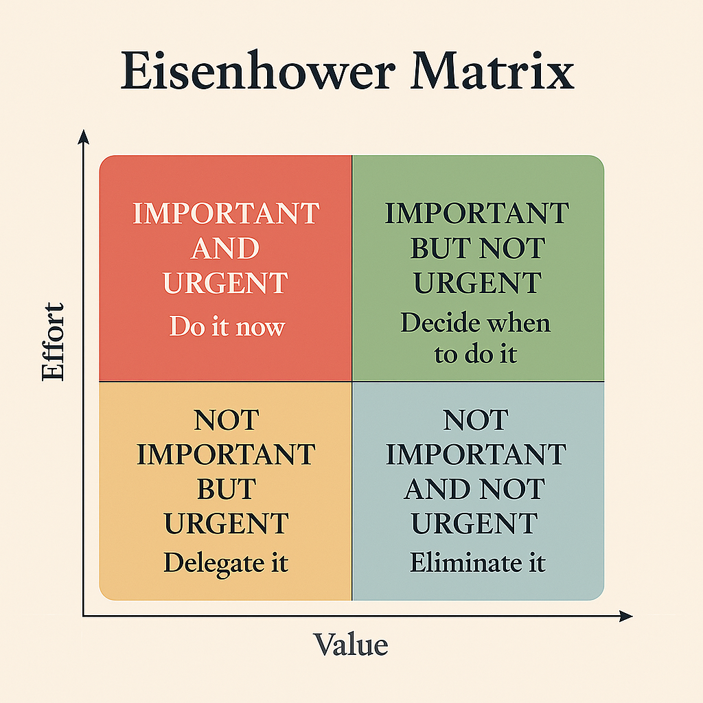 Of course, real life refuses to be boxed neatly. Priorities shift, surprises come, and urgency can change by the hour. But with this mental model in your toolkit, you get clarity. You learn to spot what truly adds value and what’s just noise masquerading as urgency.